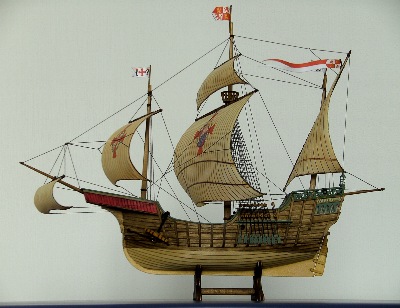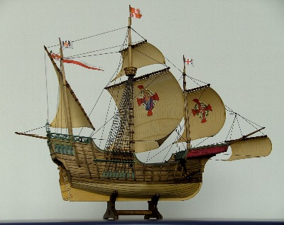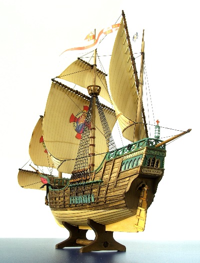 SANTA MARIA Modellbau: Nach vielen Jahren vegessenen Kellerdaseins Fertigstellung im März 2013 Grundlage: Formenübertragung von einem ehemaligen Kartonmodell Maßstab: 1:90 Ausfertigung: einfaches Holzspanten gerüst (2 mm). Planken aus 0,5 mm Sperrholz; Formgebung der einzelnen Bordwand Planken empirisch ermittelt. Verwendung der Segel des ehemaligen Kartommodells. Verbleib: Clarens, Schweiz