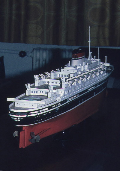 „ANDREA DORIA“ Modell I Modellbau 1958/ 1959 Unterlagen Fotomaterial Hamburger Tagespresse inklusive einer Seitenrißzeichnung. Anfertigung eines eigenen Bauplanes. Ausfertigung Maßstab: 1:220 Rumpf: Schichtbauweise, Pappelholz; Aufbauten: Sperrholz, Pappe; Anbauteile: Holz, massiv; Antrieb: E-Motor, Block-Batterien (Detaildaten nicht mehr bekannt). Verbleib Privatverkauf ca. 1969